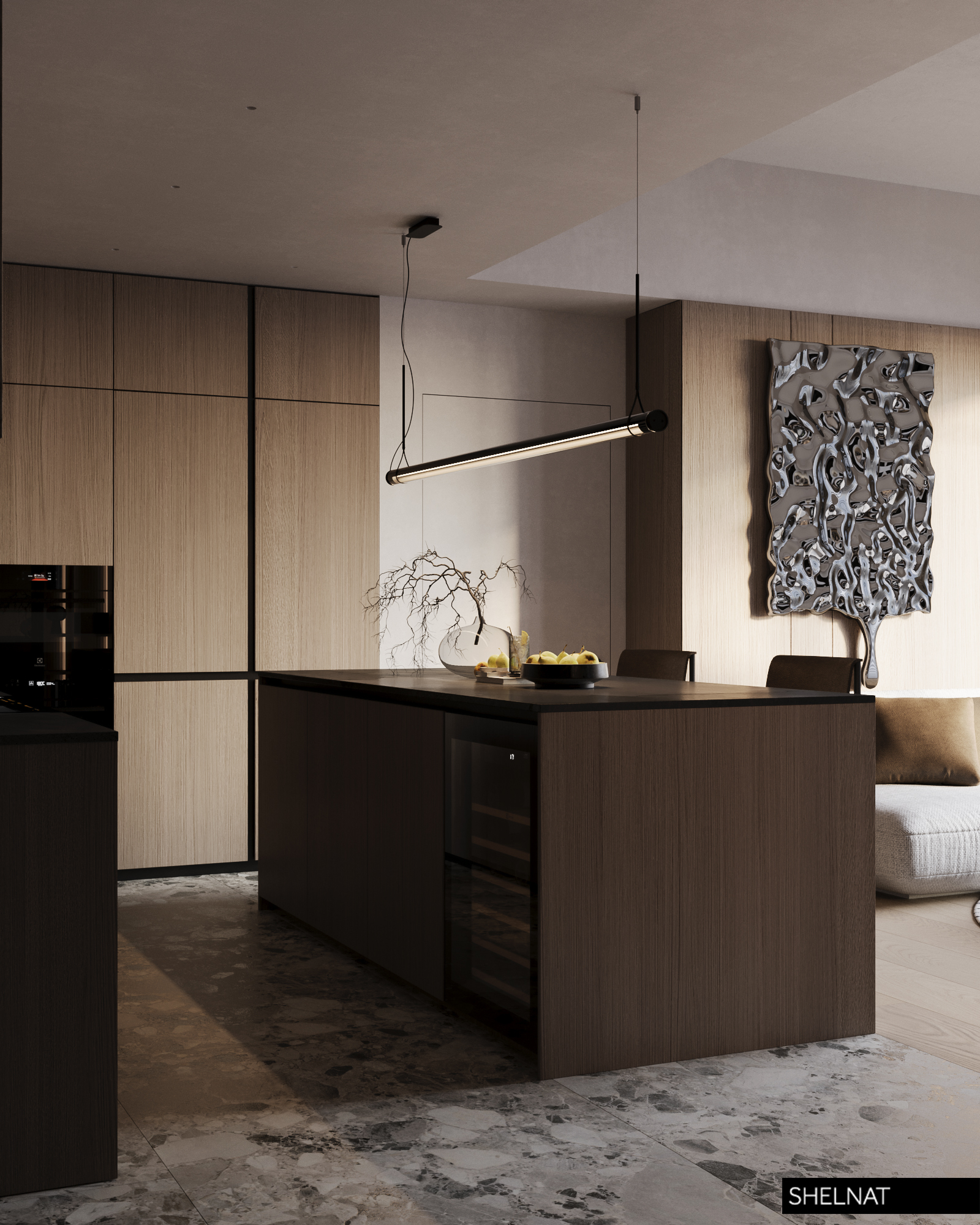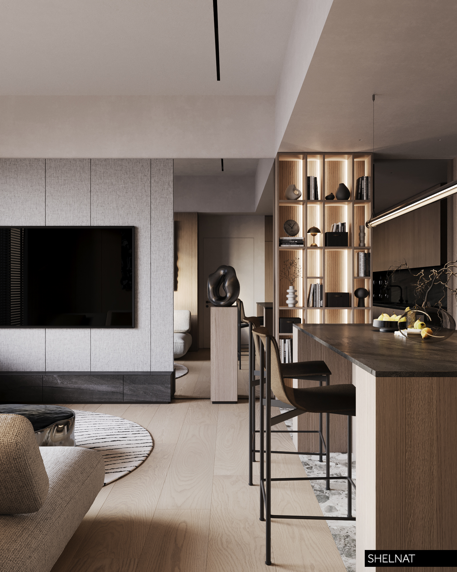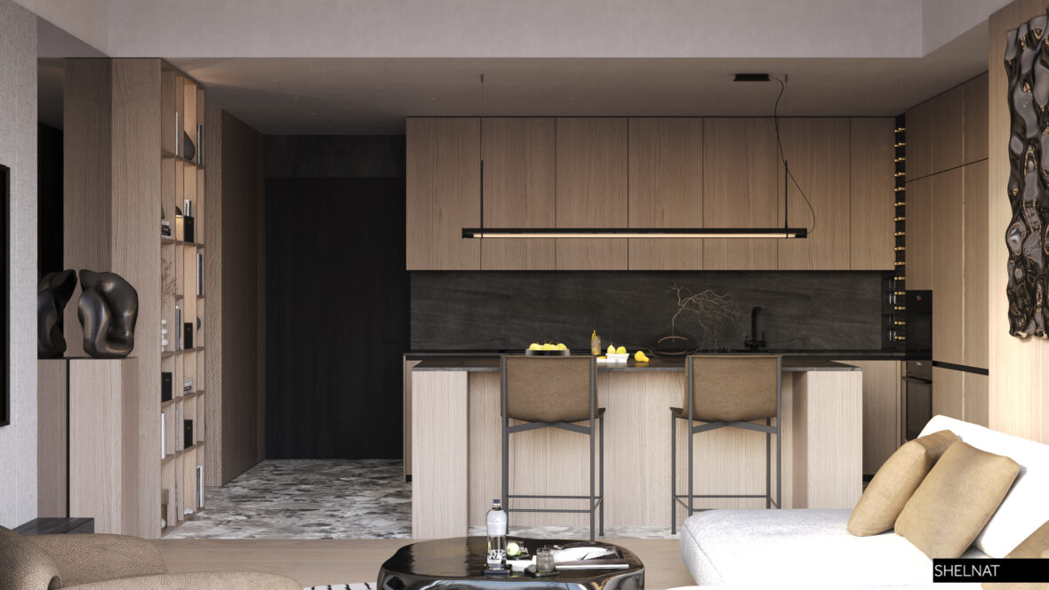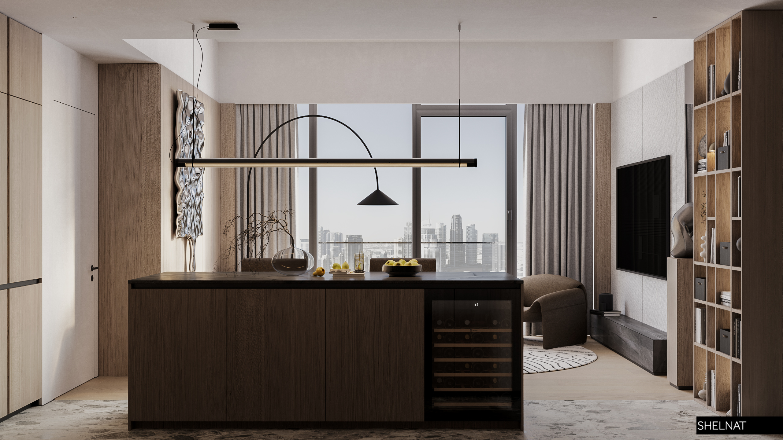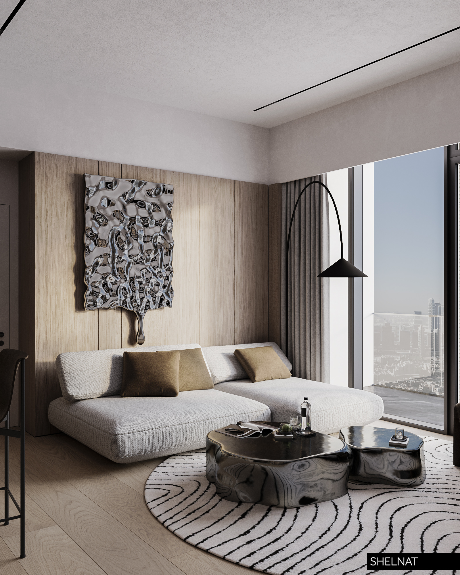 Владелец этих апартаментов в новостройке у Бурдж-Халифы обозначил свою квартиру в Европе как самое любимое место и хотел бы перенести это ощущение в свои апартаменты в Дубае. Он молод, свободолюбив и много работает из дома, поэтому интерьер должен быть удобен для его жизни и работы.